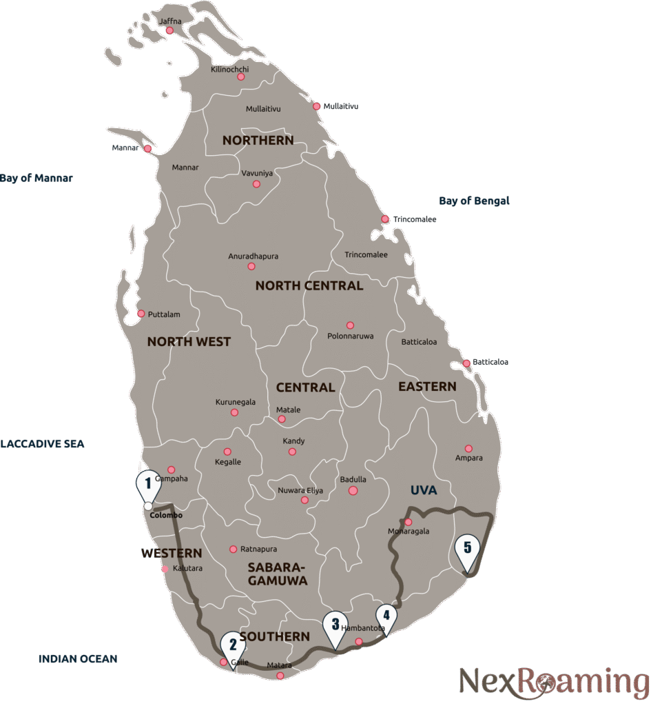 🔄 Optional extensions to Anawilundawa, Mannar, Jaffna, or Trincomalee can be arranged on request. These will require extra days, nights, and added cost.